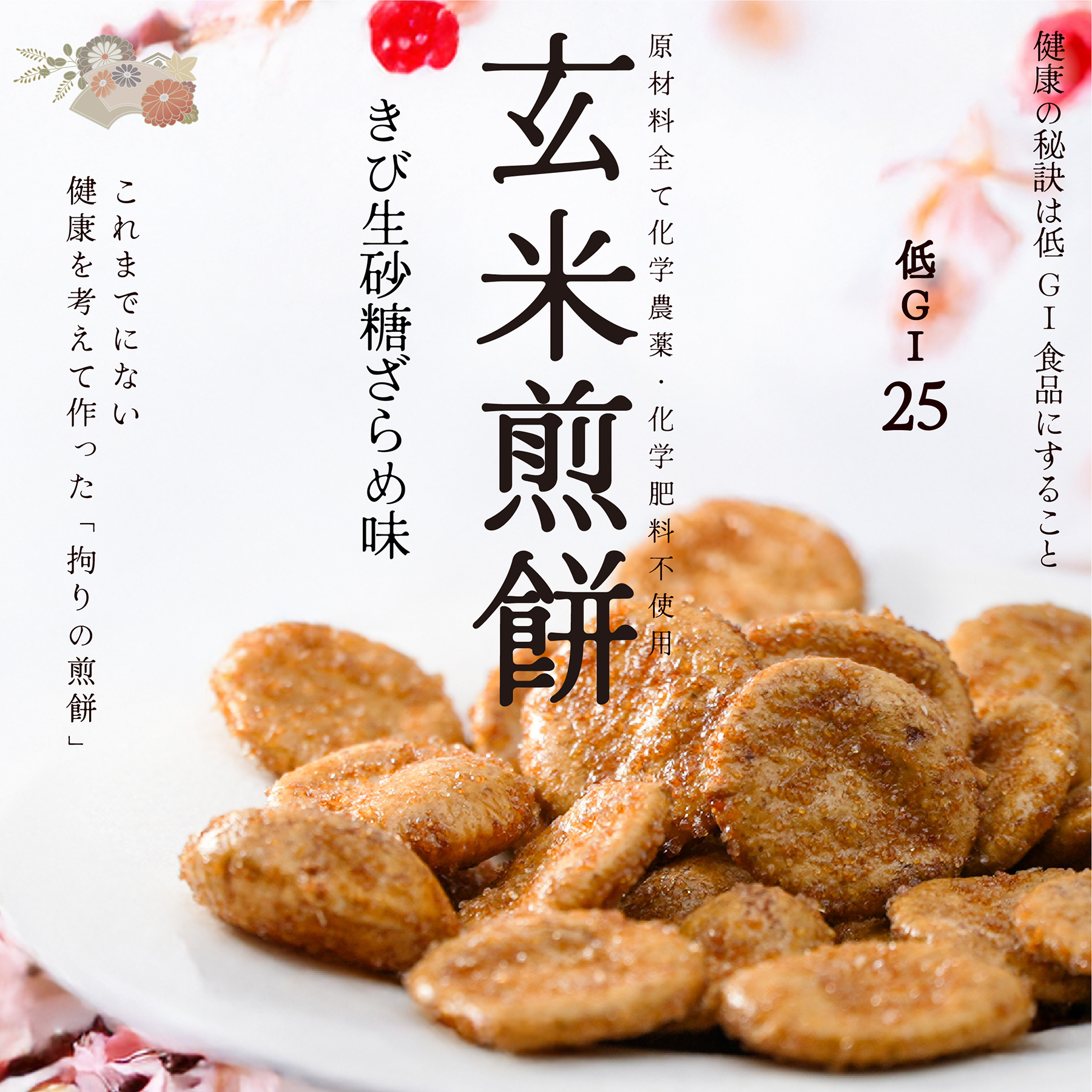 【今なら8%OFF】玄米煎餅 きび生砂糖ざらめ味 80g 低GI値25 無農薬の材料だけで作ったせんべい