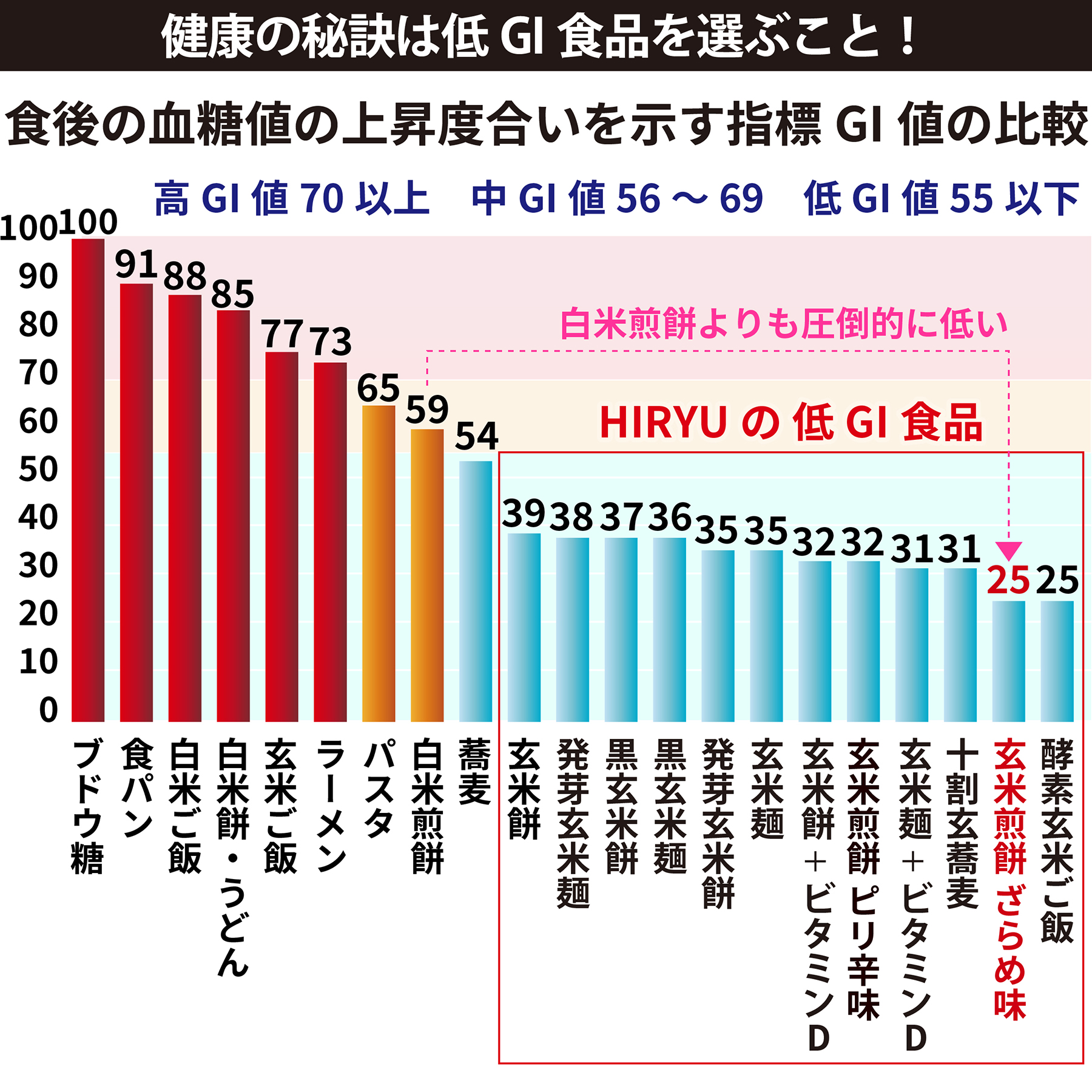 健康の秘訣は、食品を低GIにすること!HIRYUの低GI食品はその一歩を応援します!