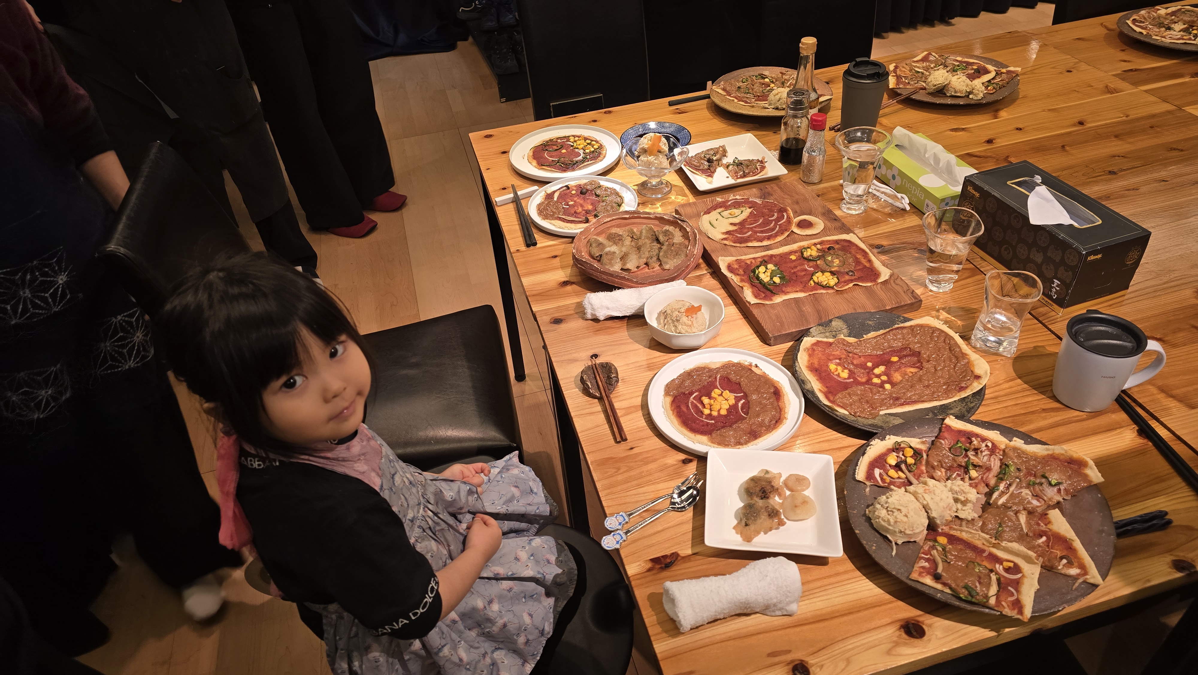 豆腐で作ったグルテンフリーのピザ生地の上に、彩蓮さんが可愛い顔などのたくさん素敵なトッピングをしてくれました。