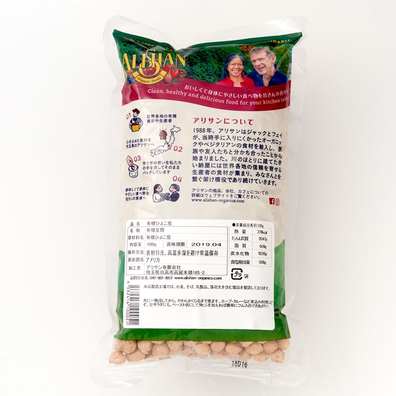 有機ひよこ豆 500g 有機JAS認定 オーガニック アリサン(ALISHAN)