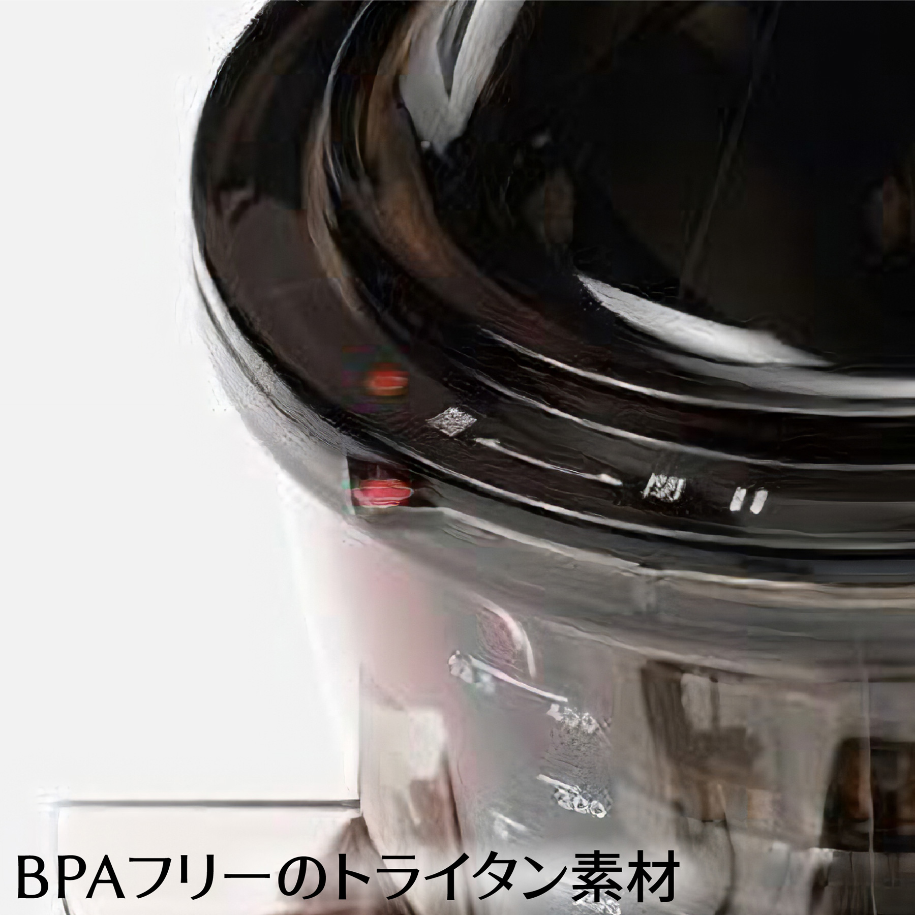 ブレード(刃)タイプのジューサーやミキサーの様に、不均質に細胞膜や栄養素を粉砕しないので、栄養素への大量の酸素混入による「酸化」と、高速回転での「摩擦熱」による栄養素への影響がなく、静音なので夜中でも安心して、健康的で美味しいジュースを楽しめます。