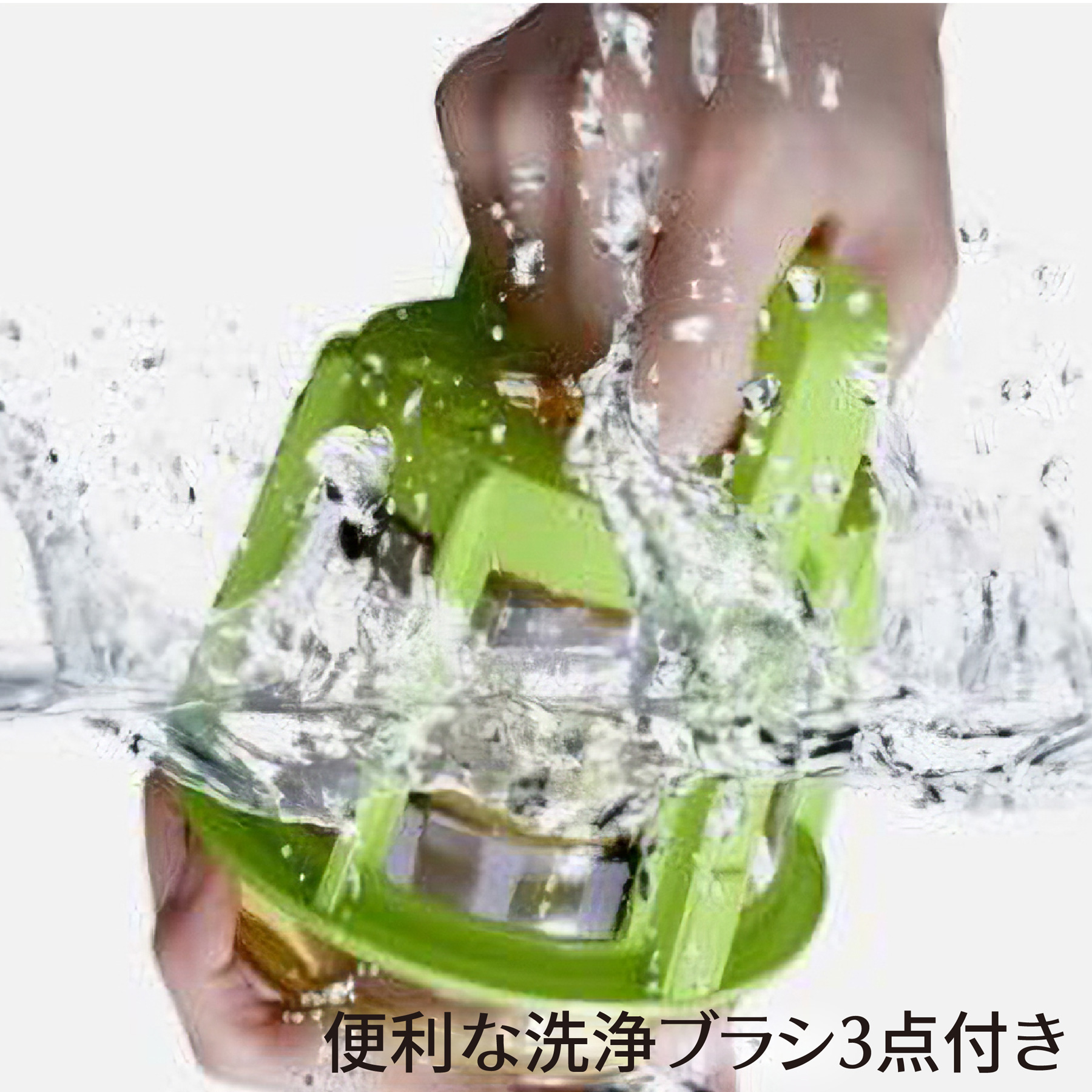 ご利用後も、圧搾式で食物繊維だけが残る程度なので、ブレード(刃)タイプの様に頑固なこびりつきもなく、簡単に水洗いで洗浄が済みます。