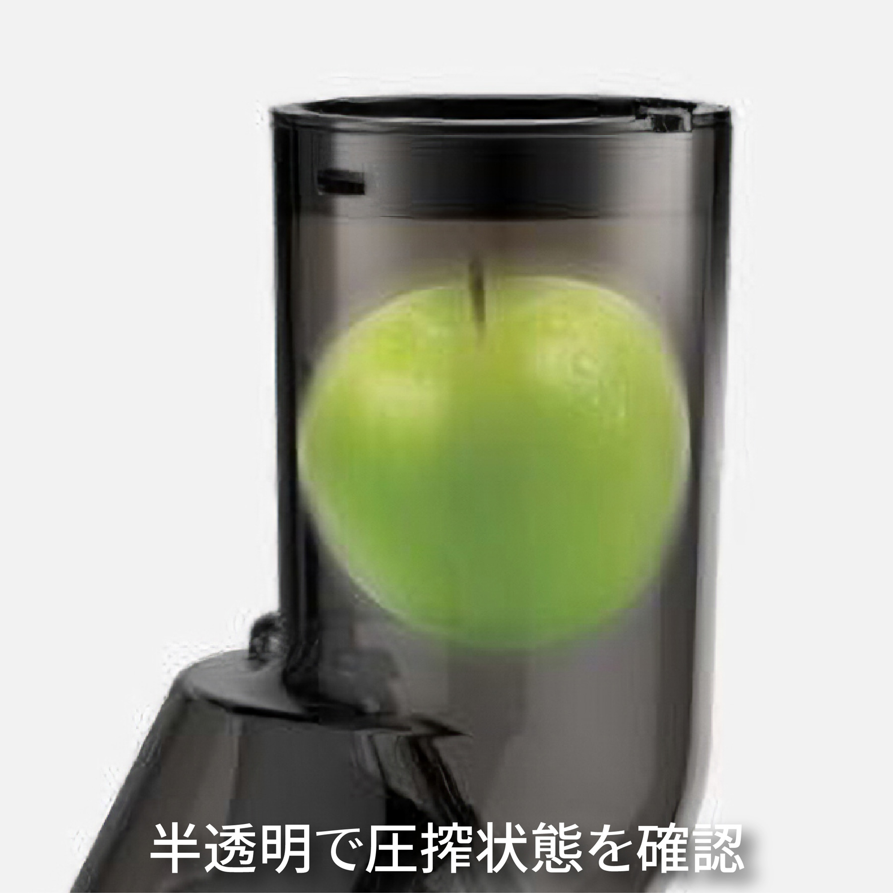 ホールスロージューサーJSG-821は、低速回転で石臼のように圧力をかけて、材料をゆっくりとすり潰し搾汁します。