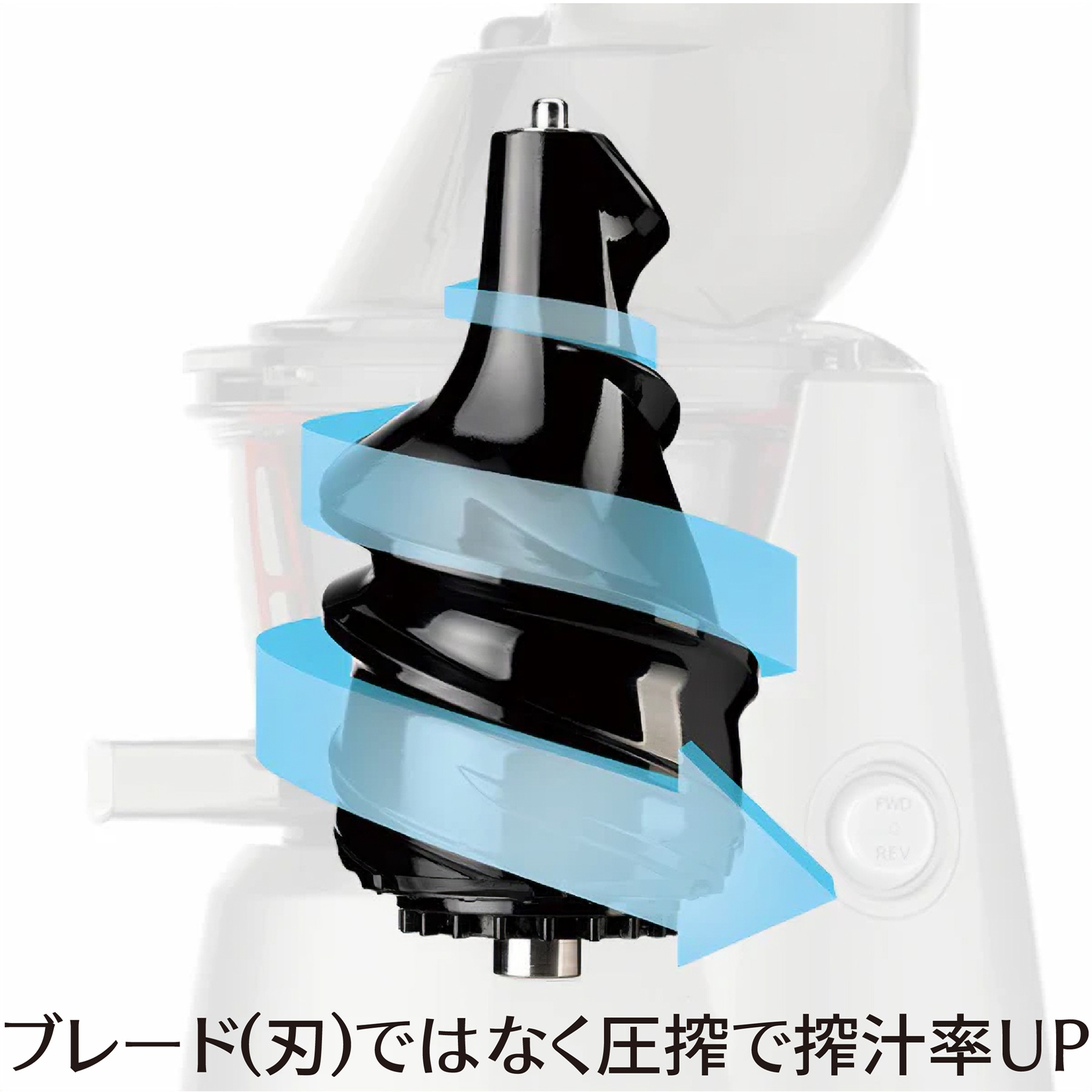このスクリューにより、搾汁量と栄養の吸収率が増加し、分離現象を防ぎます。