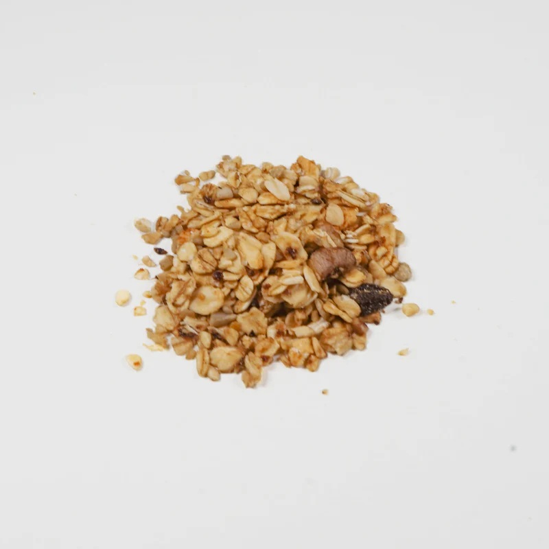 原材料: 有機オーツ麦, 有機レーズン, 有機くるみ, 有機ひまわりの種, 有機メープルシロップ, 有機菜種油, 有機りんご