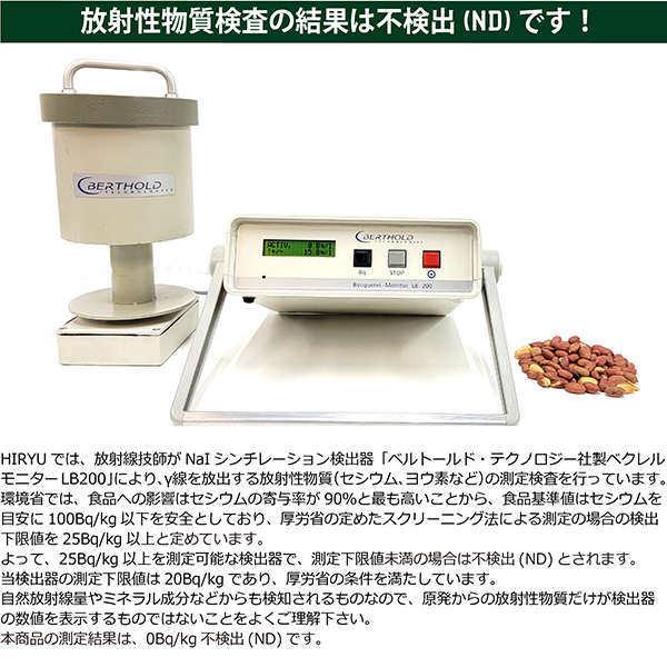 本商品の測定結果は、0Bq/kg不検出(ND)です。