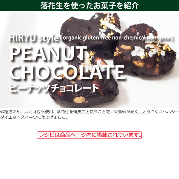 砂糖控えめ、カカオ豆不使用、落花生を薄皮ごと使うことで、栄養価が高く、太りにくいヘルシーダイエットスイーツに仕上げました。