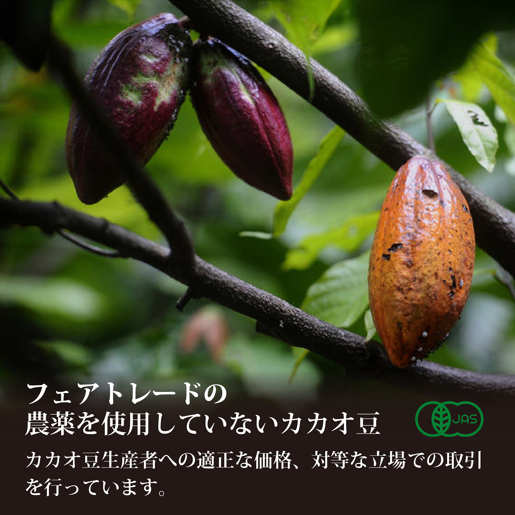 カカオの豆は、地球と人々に優しいフェアトレードのものを使用し、持続可能な供給先と提携を結び安定した価格で製品をお届けします。