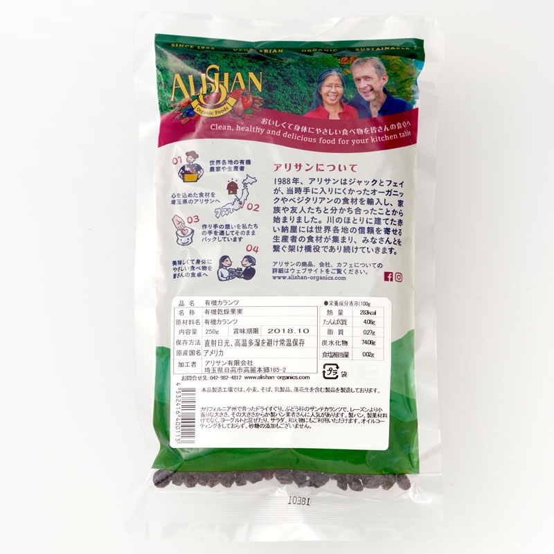 【OUTLET】有機カランツ 250g アリサン(ALISHAN)