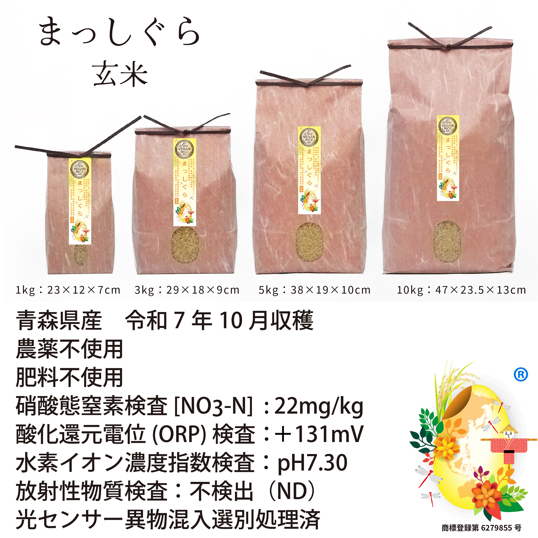 【新米】 自然栽培の玄米 まっしぐら 令和7年産 農薬・肥料不使用 青森県産 VEGAN RICE認証米
