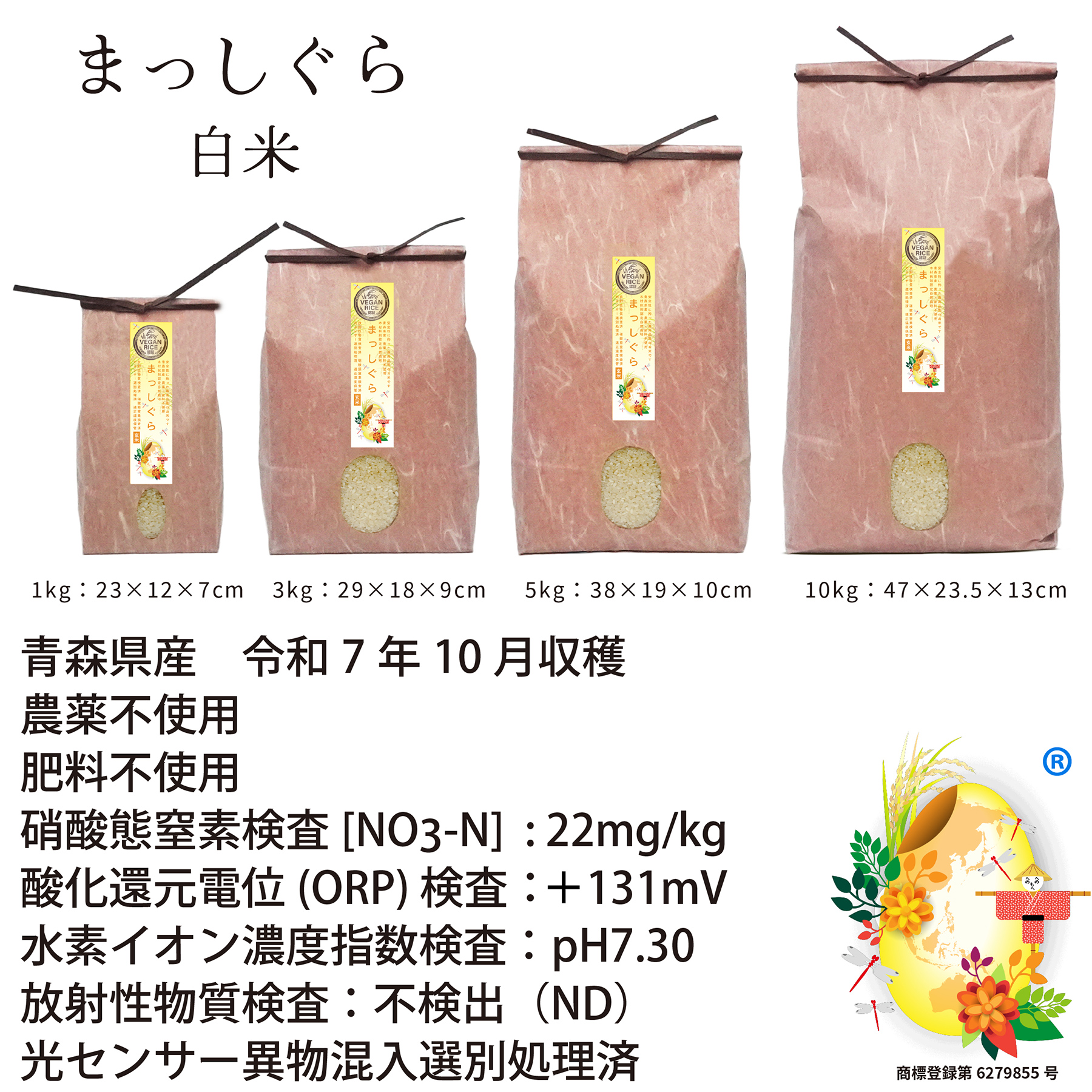 【新米】 自然栽培の白米 まっしぐら 令和7年産 農薬・肥料不使用 青森県産 VEGAN RICE認証米 精白米
