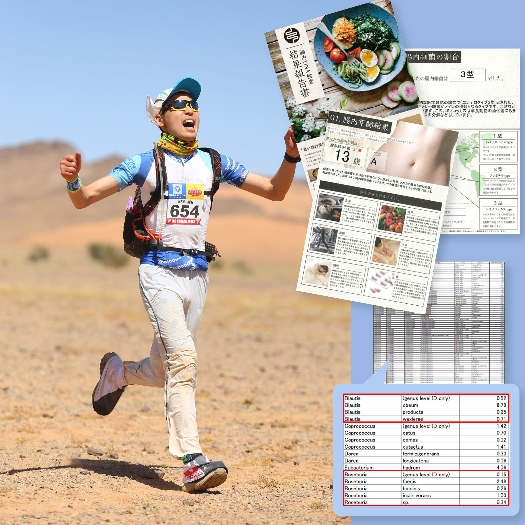 HIRYUのアスリート食学博士の犬井健さんのブラウティア菌保有率は8.57%(平均の5倍)、ロゼブリア菌保有率4.26%(平均の4.6倍)でした。