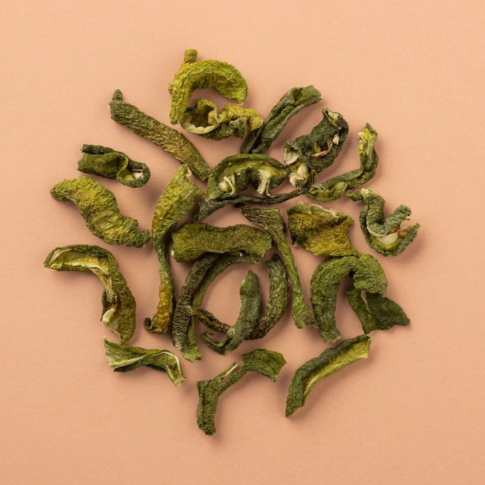 その代わりに、すっきり味わい深い青唐辛子の爽やかな風味は、生で食べるよりも増しています。