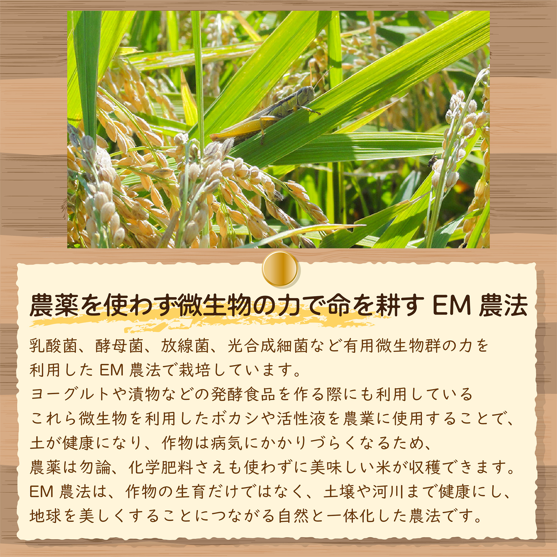 無農薬・無化学肥料のEM農法米(EM栽培米)です。