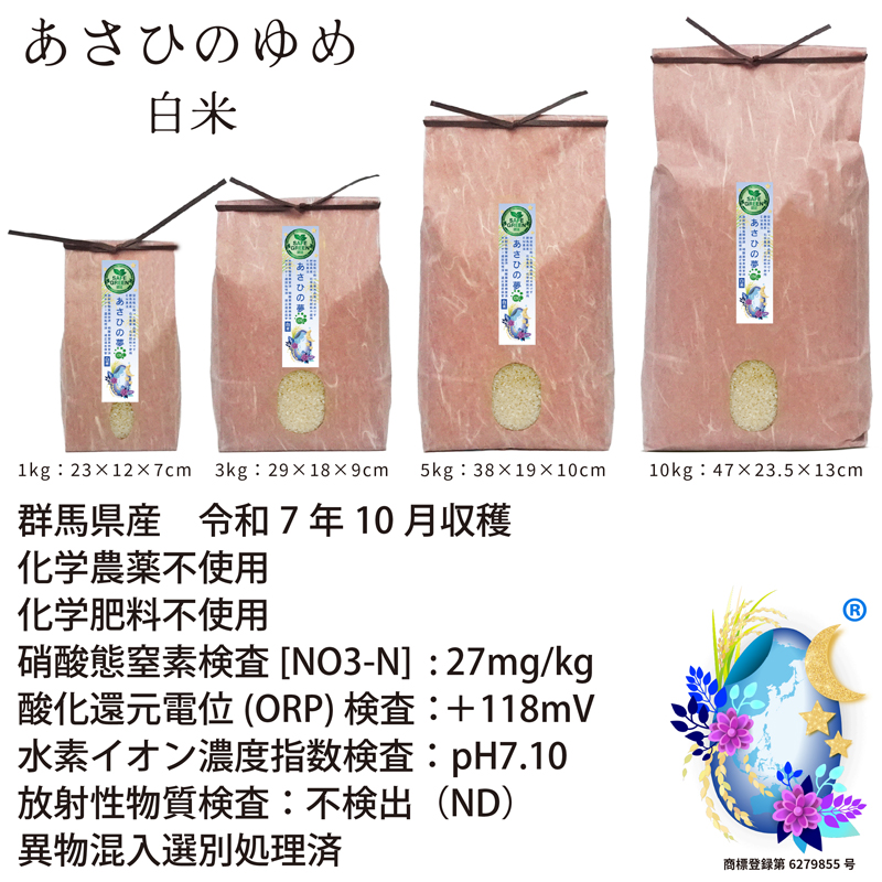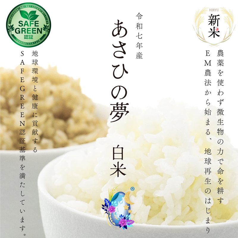 【新米】EM農法の白米 あさひの夢 令和年産 化学農薬・化学肥料不使用 群馬県産 SAFE GREEN認証米
