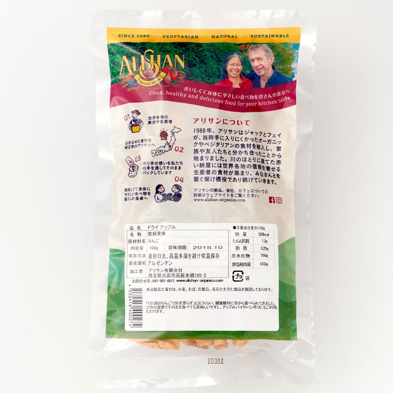 【OUTLET】有機ドライアップル 100g アリサン(ALISHAN)