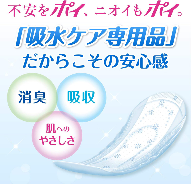・ポイズ 肌ケアパッドは、尿モレ(尿もれ)で悩んでいる方や、吸水ケアを生理用ナプキンで代用している方におすすめな尿ケア専用品(尿漏れパッド)。